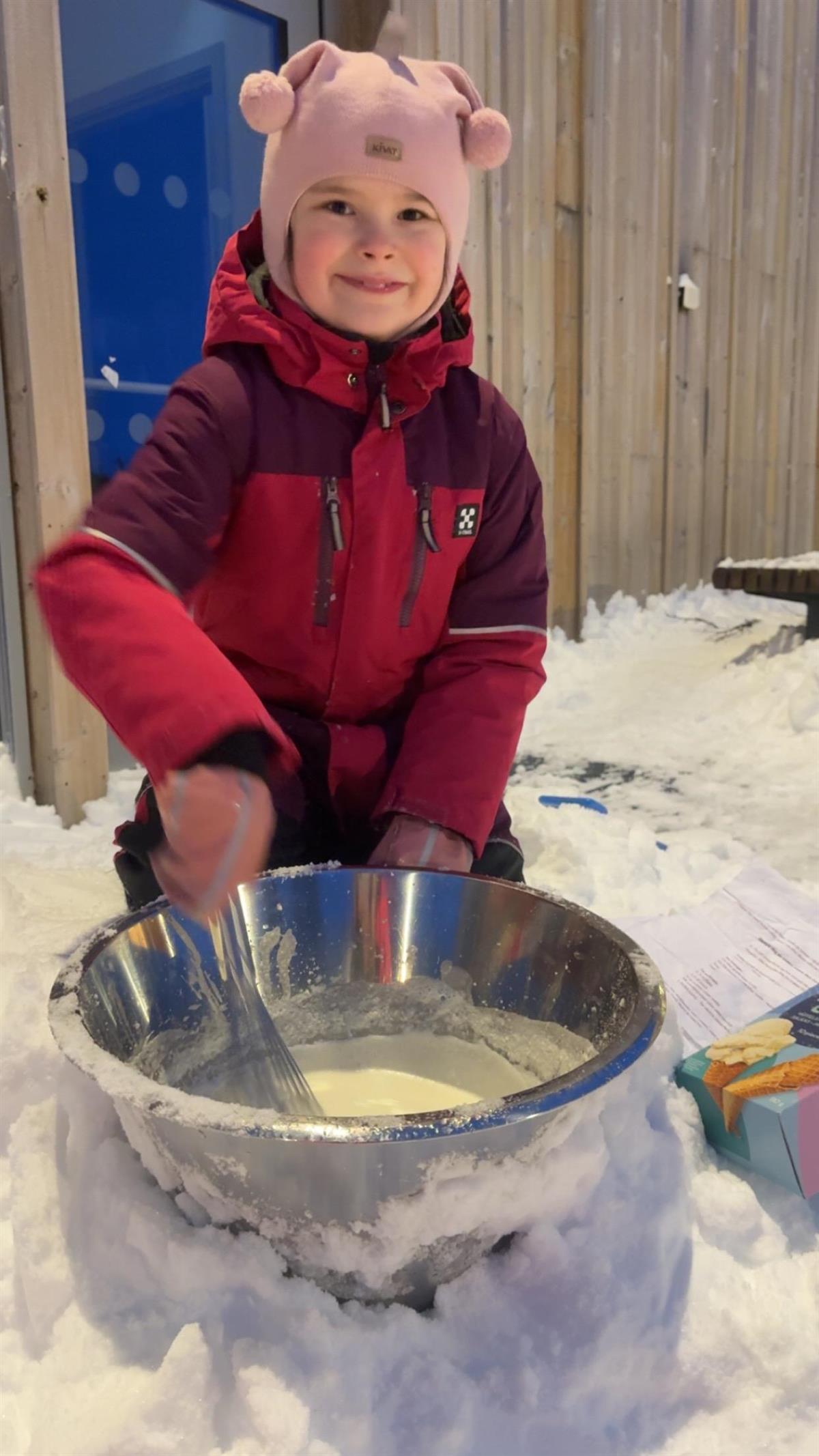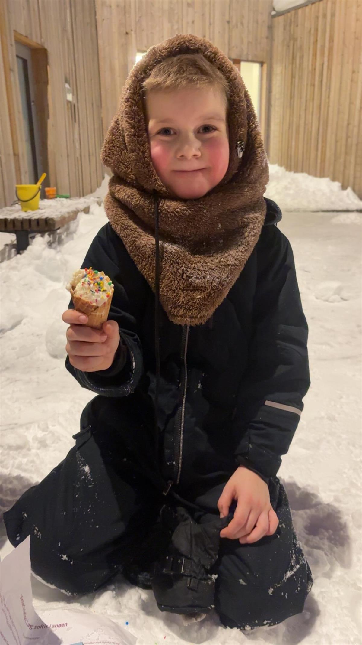 I går hadde vi en skikkelig koselig aktivitet på SFO. Sammen med barna lagde vi softis rett på snøen! Vi ble enige om at det ikke er noen grunn til å vente på sommeren når man kan lage is sammen her og nå.