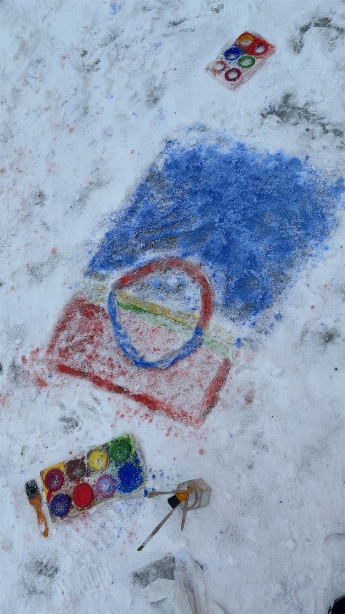 Gjennom dagen skal vi fordype oss videre i samisk kultur. Småtrinnet har malt det samiske flagget på snøen, og elevene skal også utforske samiske tradisjoner og kjenne på fellesskapet og ånden som dagen bærer med seg.