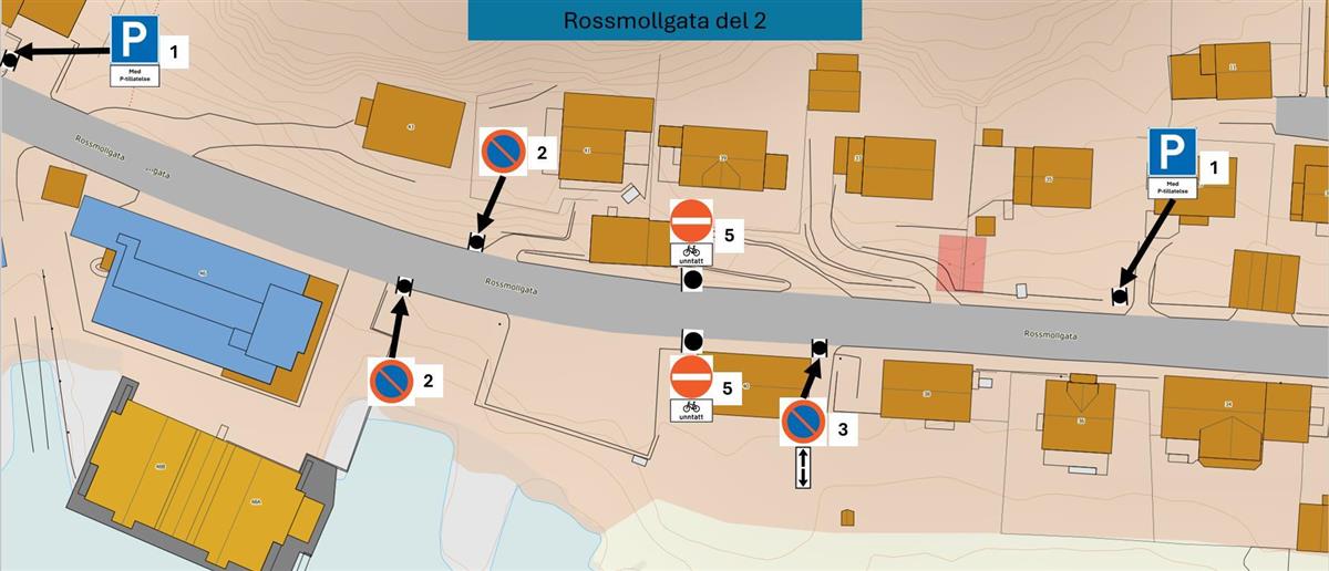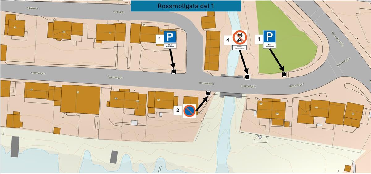 - Det lages en ny skiltplan for Rossmollgata. Den skal godkjennes av Statens vegvesen og vil inneholde: