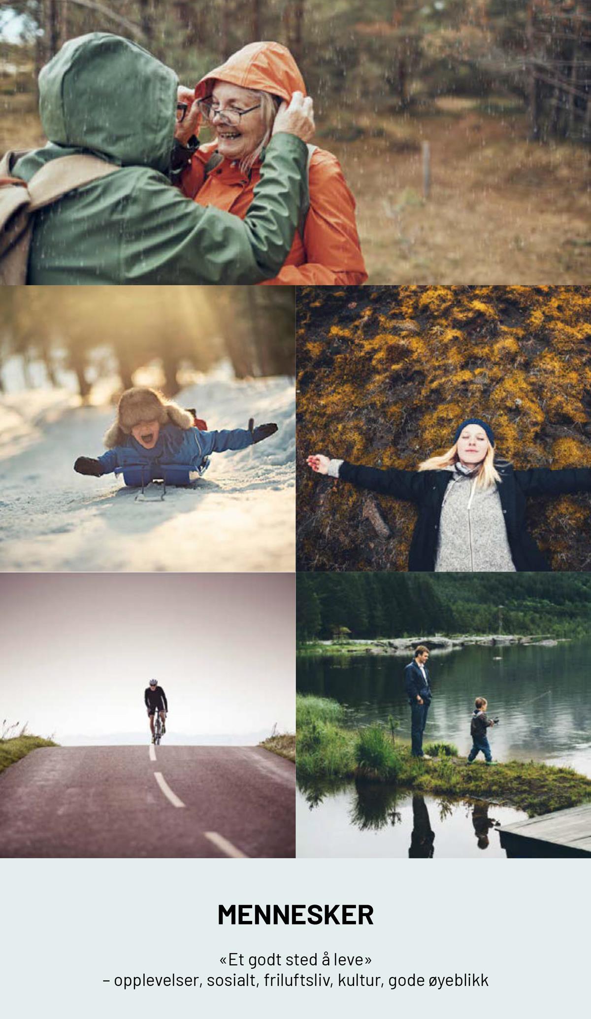 Bildene skal oppleves som ekte og naturlige, med fokus på mennesker i aktivitet eller samhandling. Bildene skal ha klare og tydelige farger, og oppleves romlig/luftig. Velg enkle motiver med få detaljer, og ro i bildet. Velg bilder med omhu, så de står godt sammen med andre elementer på den aktuelle flate.